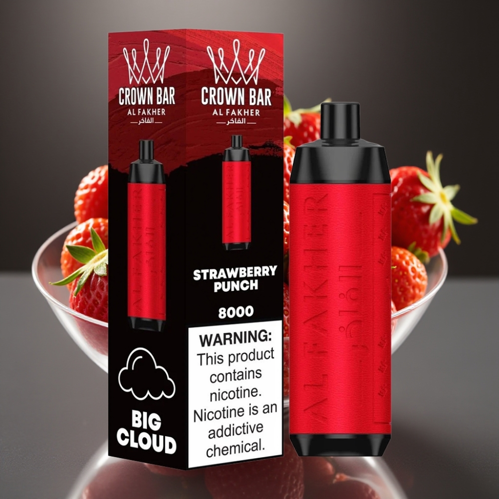 Al Fakher Crown Bar 8000 Crystal Disposable Vape Jordbær Punch – 18ml, 5mg, 8000 Puffs