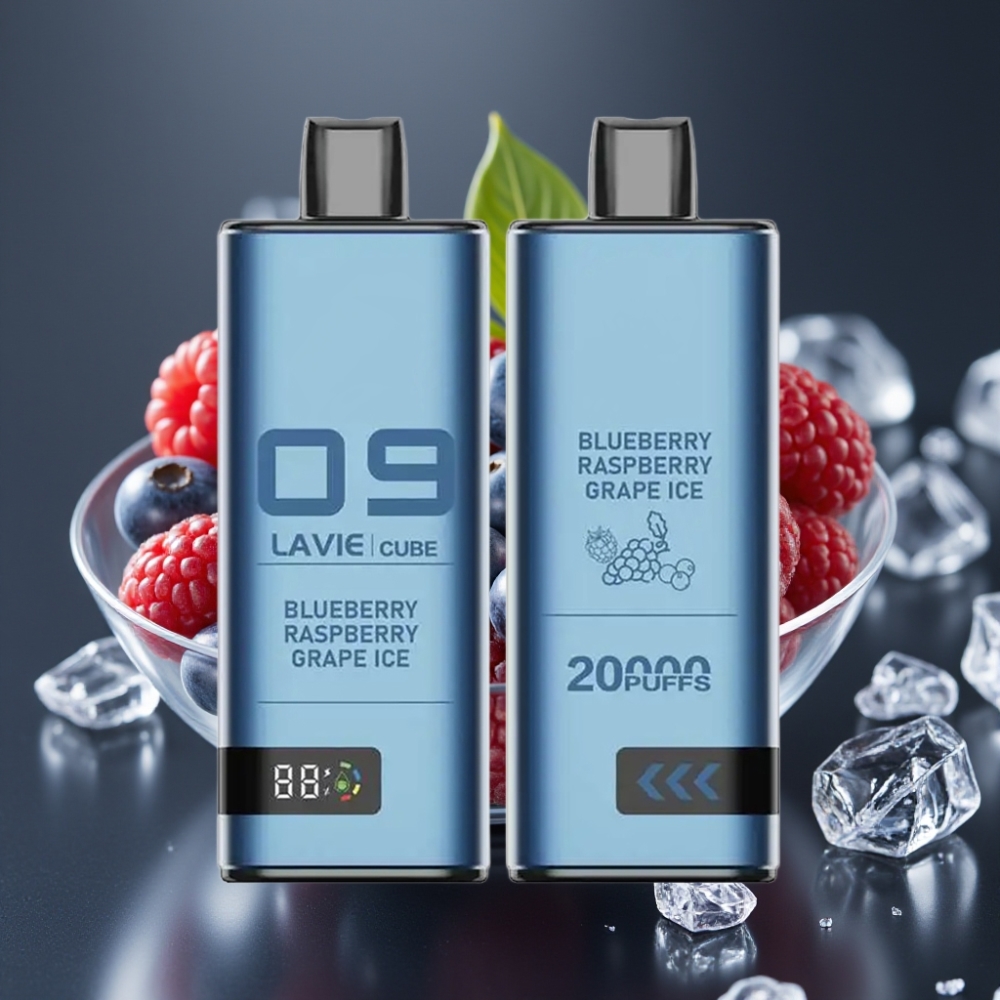 Lavie Cube 20000 Puffs Disposable Vape Blåbær Bringebær Drue Is – 28ML, 600mAh, Type C