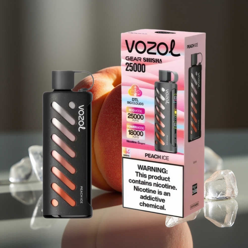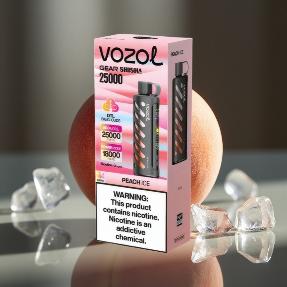VOZOL Gear Shisha 25000 Puffs Fersken Is – 1000mAh, 5mg/ml, Dual Mesh